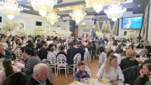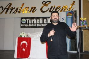 SCHWIEBERDINGEN- Sinop’un Türkeli ilçesi mensubu vatandaşlar her yıl olduğu gibi bu sene de geleneksel hale getirdikleri iftar programı düzenledi. Schwieberdingen’de bulunan Arslan Event Salonunda gerçekleşen iftar buluşmasına Avrupa’da bulunan tüm Türkelilileri katıldılar. Merkezi Almanya’nın Stuttgart kentinde bulunan Avrupa Türkelililer Derneği’nin düzenlediği iftar program öncesi bir konuşma yapan Avrupa Türkelililer Derneği Başkanı Ali Bozkurt, “Gurbetteki Türkelililerin her zaman en özel günlerinde yanında olan dernek, her yıl hıdrellez, kestane şenliği ve keşkek şöleni gibi birçok etkinlikle gurbetteki Türkelilileri bir araya getiriyor olmanın mutluluğu yaşıyoruz. Hamdolsun ki çok sayıda gurbetteki hemşerimizin katılımıyla bir iftar programına daha şahit olduk. Katılımlarından dolayı herkese ve de sponsorlarımıza ayrı ayrı teşekkürlerimi sunarım“ dedi. Ayrıca Dernek Başkanı Bozkurt, gurbetteki Türkelili hemşehrileri derneğe destek ve üye olmaya davet ederek, yıllık aidatlarının 25 Euro olduğunu belirtti. İftar şenliğinde bir de çocuklara sürpriz yapıldı ve çeşitli hazırlanmış hediyeler bayram öncesi minik çocuklara Dernek Başkanı Ali Bozkurt ve yöneticiler tarafından dağıtıldı. Ayriyeten dernek olarak düğünlerine gidemeyen yöneticiler adına Dernek Başkanı Ali Bozkurt ve Şeref Bozkurt, iki genç yeni evli çifte üyelerin huzurunda mutluluklar dileyerek hediyelerini takdim ettiler.