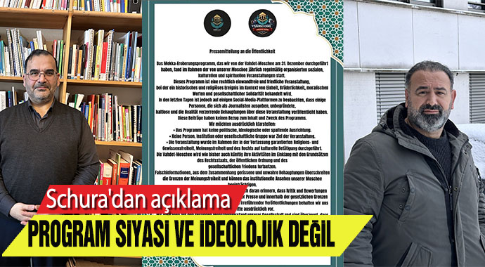 Schura açıklamasında, dini ve kültürel etkinliklerin anayasal güvence altında olduğu vurgulanarak, bu tür faaliyetlerin bağlamından koparılıp siyasi tartışmaların parçası haline getirilmesinin toplumsal barışa zarar verebileceği ifade edildi. Açıklamada, eleştirilerin sorumluluk bilinciyle, ötekileştirici ve kutuplaştırıcı bir dil kullanılmadan yapılması çağrısında bulunuldu. Schura ayrıca, farklı inanç ve kültürlerin bir arada barış içinde yaşadığı Almanya’da karşılıklı saygının korunmasının önemine dikkat çekerek, kamuoyunu sağduyuya ve itidale davet etti.