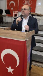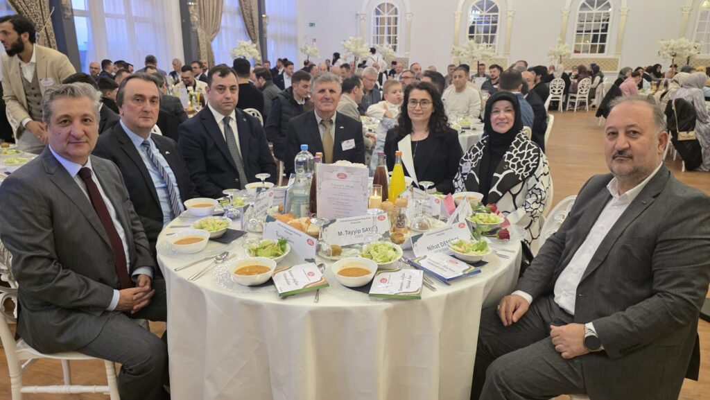 Murat Güleç’in sunumu yaptığı iftar programın açılışı Kur’an-ı Kerim tilaveti ile başladı. Sonra ev sahibi olarak selamlama konuşmasını DİTİB Württemberg Eyalet Birliği Başkanı İsmet Harbi yaptı. Ramazan ayının feyzinden bahseden Başkan Harbi, “Bugün sahip olduğumuz camiler, cemiyetler ve eğitim merkezleri, bizden önceki büyüklerimizin fedakârlıklarıyla var oldu. Onlar sadece binalar inşa etmediler; aynı zamanda burada yaşayan her bir Müslüman için güçlü bir dini ve sosyal hayatın temelini attılar. Bugün bizler de bu emaneti daha ileriye taşıma sorumluluğuna sahibiz” dedi. Gençlere de seslenen Birlik Başkanı İsmet Harbi, “Sizler de bu topluluğun geleceğisiniz. Ramazan’ın bereketini yaşarken, bu sofralarda gördüğümüz dayanışma ve sevgiyi unutmayın; onu gelecek nesillere taşıyın. Birbirimize destek olduğumuz, omuz omuza durduğumuz sürece hem kendi hayatımız hem de toplumumuz daha güçlü olacaktır” tavsiyelerinde bulunurken hanımefendilere de seslenerek emeklerinin, sabırlarının ve fedakârlıklarının unutulmayacağını her alanda emeği geçenlere de teşekkür etti.