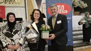 Toplumun her alanında var olan güzel çalışmaları ve emeklerini hiçbir zaman kadınların kadınlar gününü kutlamasıyla sözlerine başlayan Stuttgart Başkonsolosu Makbule Koçak Kaçar, “Baden-Württemberg eyaletinde yükselen camilerin hem inşa süreçlerinde çocukların ve gençlerin eğitiminde hem de dezavantajlı olan kesimlere şefkat elinin uzatılması noktasında kadınlarımızın düzenledikleri seminerler, etkinlikler ve sosyal projeler ile saymakla bitmez. Bizler Hepsiyle gurur duyuyoruz” dedi. Dünyada savaşlar olmasın diye Türkiye’nin elinden geleni yaptığını vurgulayan Başkonsolos Koçak Kaçar, “Türkiye ülkemiz. Sizlerin de buralarda kalbinde hala Türkiye sevgisini yaşayarak bulunduğumuzu çok iyi biliyorum. Binlerce yıllık devlet tecrübesinden aldığı güçle devletimiz hem bölgesinde hem ötesinde barış olsun diye insanlar ölmesin diye bütün diplomatik çabalar gösteriyor. Gelinen nokta tüm ülkeler Türkiye ile iş birliğinin öneminin farkında ve Türkiye gittikçe daha fazla görüyor. Sizin burada da Türkiye’ye çok büyük katkılarınız olmuştur ve olacaktır. Ayrıca Türk toplumu bulunduğu her yere de her zaman katkı sağlamıştır. Bulunduğu ülkenin kurallarına ve anayasasına her zaman saygılı olmuştur. Diliyorum ki bu iş birliği arttıkça da bu daha çok benimsenecek ve daha çok takdir edilecektir” diyerek Türkçe ve meslek eğitimi için gençlere seslendi. Program sonunda hediye takdiminden sonra hatıra fotoğrafları çekildi. Daha sonra samimi ve sıcak bir atmosferde davetliler sohbet etme imkânı buldular.
