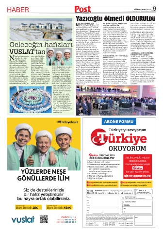 Abone Haftada 6 gün (Pazar ve Tatil günleri gazeteniz gönderilmez.) ❑ Aylık: 25,- �
