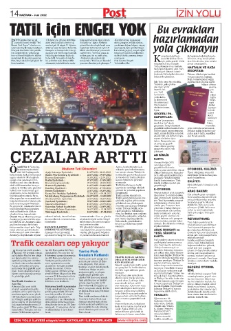 ödeyecekler. Yerleşim yeri hız ve ehliyetlerine 1 ay el konu- alındı. Buralara park cezası 55 vardır. Ayrıca 2006 yılı orta- ti, Alman Otomobil