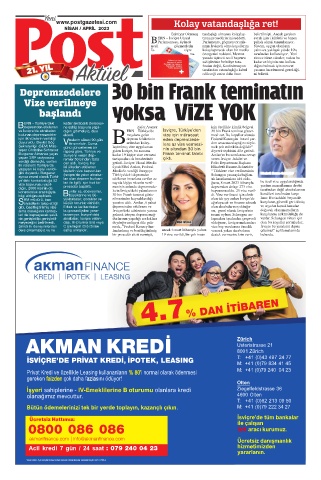 İSVİÇRE’DE PRİVAT KREDİ, İPOTEK, LEASING M: +41 (0)79 834 41 45