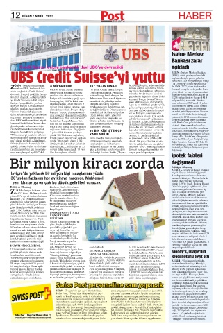 ve Credit Suisse için 100 milyar lamaya göre, UBS’in krizi sona kısa süreli bir yükselişe neden kaybetti. İsviçre Devlet Televiz- milyar dolar) zarar etti. Söz ko-