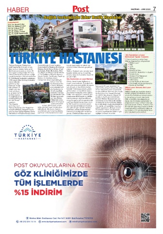 Tüm branşlar- tedavi yöntemleri lur. Bu hastalıklar arasında katarakt le ve çok detaylı olarak gerçekleştirilir. kullanılmaktadır. Türkiye Hastanesi Göz