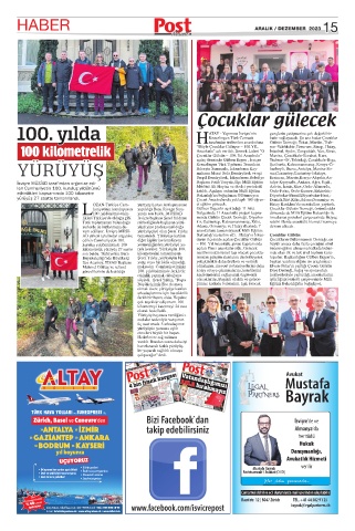 OZAN-Türkiye Cum- yürüyüş Lozan Antlaşmasının ci eğitim görecek. Hatay Kırıkhan'da anaokulları yaptırdı.