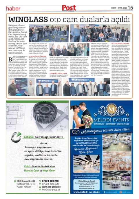 açtıkları WINGLASS Oto Cam lenerek size bolca zaman kalıyor. ni garanti ediyor. Kasko sigor- ve Samet Can Başer, “Yeni yıllara dayanan deneyimimiz lerini büyük bir hassasiyetle