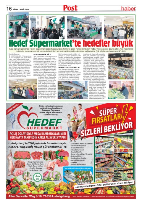 UDWİGSBURG- ‘Ucuz al güven- 2001 yılından beri Hedef Süpermarket yürüyen ve gecesini gündüzüne katan kuru gıda, kaliteli bol çeşit yelpazeli