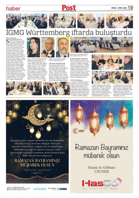 Derneği Başkanı Şükran Cihan, Onursal Başkanı Kemal Akyol, tilavetiyle başladı. Bölge Başkanı başlayan Stuttgart Başkonsolosu