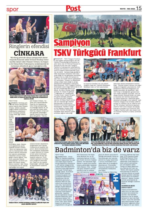 birinciliğine ulaştı. Maçtan süreçte benden desteklerini Şampiyonası’nda Bronz madalya kazanan Türkiye Kadın Millî Badmin- Birliği Bölge Başkanı Erkan Kahveci ve Saarland esnaflarından Orhan Baştürk yalnız bırakmadı.