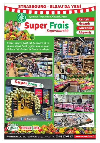3 Rue Watteau, 67200 Strasbourg (Eski EGE MARKET) • Tel.: 03 88 67 67 67 www.super-frais.fr