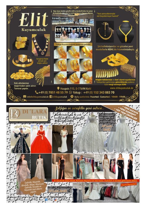info@elitkuyumculuk.de /elitkuyumculuk Açılış saatlerimiz: Pazartesi - Cumartesi : 10h00 - 19h00