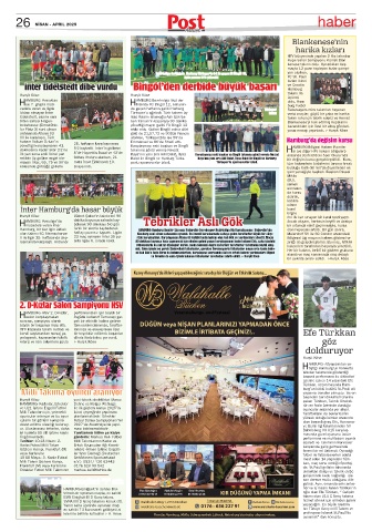 II ile ligin 25. haftasında dep- 23 maç oynayan İnter 39 pu- rizle karşılaştılar. Karşılaşmayı Altona 93 kulübü kadın hakem olan Aslı Gök ve yardımcıları yönetti. Maçın Bölgesel Lig maçının hakem gözlem ha-