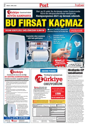 2Akt%u00fcelN%u0130SAN - APRIL 2025 haberHer ay 15 adet Su Ar%u0131tmay%u0131 noter huzurunda kura ile okuyucular%u0131m%u0131za veriyoruz. Kampanyam%u0131z d%u00f6rt ay devam edecek.Gazetesi%u2018ndenB%u00dcY%u00dcK KAMPANYA%u00c7e%u015fmeden akan suyunuzu i%u00e7ilir hale getiriyoruz.KalbinizrahatolsunEvinizdeki akan su i%u00e7ilir olunca, yemekte, %u00e7ayda, kahvede ayr%u0131 bir tad duyacaks%u0131n%u0131z.BU FIRSAT KA%u00c7MAZSUDAN SEBEPLERLE SA%u011eLI%u011eINIZDAN OLMAYIN Su Ar%u0131tma Cihaz%u0131na Siz de sahip olun.6 adet filtre ve bir adet Su Muslu%u011fu ile birlikte.Daha fazla bilgi i%u00e7inTel. 06105 - 977 78 111Mobil Tel. 0178 - 220 88 87Nisan ay%u0131 kuponlar%u0131 gazetenizde%u00e4 %u00c7ekili%u015fe kat%u0131lmak i%u00e7in okuyucumuz ay i%u00e7inde bayiden 18 gazete alacak, gazetedeki Su Ar%u0131tma Kuponu%u2019nu kesip 18 adet tamam olunca gazetemizin adresine g%u00f6nderecek.%u00e4 Abonelerimiz de %u00e7ekili%u015fe kat%u0131lmak i%u00e7in herg%u00fcn evlerine gelen gazeteden 21 kuponu tamamlay%u0131nca adresimize g%u00f6nderecek.%u00e4 Bayiden gelen kuponlar 18, abonelerden gelen 21 kuponu tamamlayan okuyucular kura %u00e7ekili%u015fine kat%u0131labilecek.%u00e4 Kurada Su Ar%u0131tma kazanan 15 okuyucuya Su Ar%u0131tma%u2019lar posta ile g%u00f6nderilecek.%u00e4 Posta %u00fccretini okuyucu kar%u015f%u0131layacak.%u00e4 Su Ar%u0131tma bir defaya mahsus olmak %u00fczere 6 adet fi litre ve bir adet Su Muslu%u011fu ile birlikte verilecek.%u00e4 Montaj%u0131 %u00e7ok kolay, Su Ar%u0131tma ile birlikte gelen montaj %u015femas%u0131na bakarak montaj%u0131 yapman%u0131z m%u00fcmk%u00fcn.%u00e4 Biz yapamay%u0131z, siz yap%u0131n diyecek olursan%u0131z Frankfurt%u2018a uzakl%u0131%u011f%u0131n%u0131z nispetinde montaj yapan ekip size montaj %u00fccretini bildirecektir.%u00e4 Su Ar%u0131tma muslu%u011funuza tak%u0131ld%u0131%u011f%u0131nda i%u00e7me suyunuzun, yeme%u011finizin, %u00e7ay%u0131n%u0131z%u0131n, kahvenizin tad%u0131n%u0131 %u00e7ok farkl%u0131 %u015fekilde hissedeceksiniz. Gazetesi%u2018nin kura ile verdi%u011fiSU ARITMA KAMPANYASINAkat%u0131lma kurallar%u0131 a%u015fa%u011f%u0131daki gibidir.Daha fazla bilgi i%u00e7in Tel. 0178 - 220 88 87Kuponlar%u0131n g%u00f6nderilece%u011fi adres:Goldfeld GmbHNordend Str. 38Gazetesi 64546 M%u00f6rfelden-WalldorfDaha fazla 0178 - 220 88 87NOT: Misal olarak deriz ki; Mart ve Nisan aylar%u0131nda veya daha sonraki aylarda iki ay%u0131 birle%u015ftirip kupon g%u00f6nderen okuyucu %u00e7ekili%u015fe dahil edilmez. abone@turkiyegazetesi.dewww.turkiyegazetesi.deNordend Str. 3864546 M%u00f6rfelden-WalldorfTel.: 06105 - 977 78 111Fax: 06105 - 977 78 170ABONE FORMUAd%u0131 Soyad%u0131 :Firma :Cadde :PLZ, Ort :Telefon :e-Mail :Tarih : %u0130mzaHesap Sahibi(Kontoinhaber)IBAN:BIC:Kontomdan %u00e7ekinizKendim %u00f6deyece%u011fim. %u00d6deme makbuzu (%u00dcberweisung) g%u00f6nderiniz.%u2022 Gazeteniz Deutsche Post taraf%u0131ndan g%u00f6nderilir. %u2022 Abone formunu faks, e-mail veya posta ile g%u00f6nderiniz. Aboneli%u011finiz formun bize ula%u015fmas%u0131 ile ba%u015flayacakt%u0131r. %u2022 Aboneli%u011finiz s%u00fcre bitiminden 1 ay %u00f6nce yaz%u0131l%u0131 %u00e7%u0131k%u0131%u015f vermedi%u011finiz takdirde ayn%u0131 %u015fartlarda devam edecektir veya verece%u011finiz yaz%u0131l%u0131 talimatla durdurabilir veya de%u011fi%u015ftirebilirsiniz. %u2022 %u0130zin zamanlar%u0131n%u0131zda isterseniz ba%u015fka adrese g%u00f6nderebilir veya dondurarak s%u00fcrenizi uzatabilirsiniz.Not:%u2751 Ayl%u0131k: 32,- %ufffdBelli bir s%u00fcreye ba%u011fl%u0131 kalmadan her ay kontonuzdan 32 %uf64e %u00e7ekilir.Abone Sistemi %u2751 3 ayl%u0131k: 93,- %ufffd %u2751 6 ayl%u0131k: 176,- %ufffd %u2751 12 ayl%u0131k: 340,- %ufffdHaftada 6 g%u00fcn (Pazar ve Tatil g%u00fcnleri gazeteniz g%u00f6nderilmez.) milletimizin ortak akl%u0131n%u0131n eseridir. k%u00fclt%u00fcr%u00fcm%u00fcz%u00fcn %u015fa%u015fmaz bek%u00e7isidir.ba%u011f%u0131ms%u0131zd%u0131r. Ancak, insani, vicdani, ahlaki de%u011ferlerden ba%u011f%u0131ms%u0131z de%u011fildir.1- Do%u011fru haber, %u00e7ok haber2- Sahalar%u0131nda se%u00e7kin k%u00f6%u015fe yazarlar%u01313- Bizim sayfalarda paha bi%u00e7ilmez din k%u00fclt%u00fcr%u00fc yay%u0131nlar%u0131 ve sorulara verilen cevaplar4- Ekonomi, Teknoloji5- D%u00fcnya ve Avrupa g%u00fcndemi6- E%u011fitim ve SporK%u0131%u015f, kar, so%u011fuk, ya%u011fmur demeden Alman Postanesi g%u00fcvencesiyle her g%u00fcn evinize gelsin.S%u0130Z DE ABONE OLUNT%u00fcrkiye%u2018yi seviyorumOKUYORUM okumak i%u00e7in %u00e7ok nedenlerim varHessen eyalet h%u00fck%u00fcmeti, okullarda cep telefonu kullan%u0131m%u0131n%u0131 yasaklamay%u0131 planl%u0131yorFRANKFURT- Almanya'da Hessen eyalet h%u00fck%u00fcmetinin okullarda %u00f6%u011frencilerin ak%u0131ll%u0131 cep telefonu kullan%u0131m%u0131n%u0131 yasaklamay%u0131 planlad%u0131%u011f%u0131 bildirildi. Frankfurter Allgemeine Zeitung gazetesinin haberine g%u00f6re, Hessen'de Hristiyan Demokrat Birlik (CDU) Partisi ve Sosyal Demokrat Partisiden (SPD) olu%u015fan eyalet h%u00fck%u00fcmetinin, okullarda cep telefonu kullan%u0131m%u0131 d%u00fczenlemesine ili%u015fkin haz%u0131rlad%u0131%u011f%u0131 yasa tasar%u0131s%u0131n%u0131 eyalet meclisine sundu%u011fu belirtildi. Haberde, h%u00fck%u00fcmetin okullarda ak%u0131ll%u0131 cep telefonu kullan%u0131m%u0131n%u0131 genel olarak yasaklamak istedi%u011fi ifade edildi. Bu yasa%u011f%u0131n ak%u0131ll%u0131 saatleri ve tablet gibi di%u011fer dijital cihazlar%u0131 da kapsayaca%u011f%u0131 aktar%u0131lan haberde, orta%u00f6%u011fretim d%u00fczeyindeki okullara, cihazlar%u0131n sadece belirli alanlarda kullan%u0131lmas%u0131 y%u00f6n%u00fcnde istisnalar tan%u0131naca%u011f%u0131 kaydedildi. Haberde, ilkokullardaki %u00f6%u011frencilerin cihazlar%u0131 %u00f6zel ama%u00e7l%u0131 kullanmalar%u0131n%u0131n izin verilmedi%u011fi ancak ak%u0131ll%u0131 cihazlar%u0131n %u00f6%u011frenim ama%u00e7l%u0131 ve %u00f6%u011fretmenin izniyle derste kullan%u0131lmas%u0131na izin veri