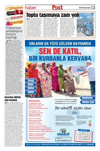 haberRHEIN-MAINFE BAktuell RUA R 2 016AktuellRHEIN-MAINFEB RUAR 2016AktuellFEB RUAR 2016yilmaz@iki-design.netwww.iki-design.netTelefon 06207-20 33 909Mobil 0163-163 20 90Auftraggeber: Post GazetesiAuftrag: Logo-Redesign %u201cPost Aktuell%u201cDatum: 19.01.2016Agentur f%u00fcr Marketing & DesignNr. 1Nr. 2Nr. 3MAYIS-MAI 2025 13SEN DE KATIL,B%u0130R KURBANLA KERVANA%u2022 Hakikat Yard%u0131mla%u015fma Kurumu vekaletle ald%u0131%u011f%u0131 kurbanlar%u0131 dinimizin kurban hususunda emretti%u011fi usullere uyarak bayram%u0131n ilk %u00fc%u00e7 g%u00fcn%u00fc i%u00e7inde keser, ilk %u00fc%u00e7 g%u00fcn i%u00e7erisinde kesilmeyen kurban vacip kurban yerine ge%u00e7mez.%u2022 Hindistan ve Afrika %u00c7ad%u2018ta kesti%u011fimiz kurbanlar%u0131n%u0131z%u0131n etlerini ad%u0131n%u0131za ihtiya%u00e7 sahiplerine ula%u015ft%u0131rmaktay%u0131z.%u2022 Hakikat.eu sitemizdeki kurban ba%u011f%u0131%u015f b%u00f6l%u00fcm%u00fcnde yaz%u0131l%u0131 isimlere umumi vekalet vermek kayd%u0131yla Online ba%u011f%u0131%u015f yapabilirsiniz.Bir vekalette sizden olsunHakikat e.V. Banka Bilgileri: Volksbank Darmstadt Mainz %u2022 IBAN: DE59 5519 0000 0546 9800 12 %u2022 BIC: MVBMDE55%u2022 Kesim s%u0131ras%u0131nda %u00e7ekilen videolar%u0131, Whatsapp ile an%u0131nda kurban sahibine g%u00f6nderiyoruz.www.hakikat.euinfo@hakikat.euHindistanAfrika-%u00c7adVekaletleriniz i%u00e7in%u0130rtibat Telefon Numaralar%u0131m%u0131z : +49 (0) 6105-71 76 114: +49 (0) 171-53 10 757 : +49 (0) 172-72 84 114 : +49 (0) 173-86 77 577 : +49 (0) 172-82 66 797VacipAdakAkika%u015e%u00fck%u00fcrKurban vek%u00e2letlerinizi Hindistan%u2018da Arakanl%u0131ve Afrika-%u00c7ad%u2018taki fakir insanlara HAK%u0130KAT Yard%u0131m Kurumu g%u00fcvencesi ile ula%u015ft%u0131r%u0131yoruz.120%u20ac Kurban bedeli KISSADAN H%u0130SSE %u2022 Ey m%u00fckellef fani insan%u2022 Bir kurbanda senden olsun%u2022 Y%u0131lda bir et y%u00fcz%u00fc g%u00f6ren%u2022 Din karde%u015fin mutlu olsun sevinsin%u2022 Karde%u015fli%u011fimizin asl%u0131%u2022 Ne renktedir ne kavimde%u2022 %u0130slamiyet c%u00fcmlemize%u2022 Rabbimizinden hediye%u2022 %u015eayet var ise imkan%u0131n%u2022 K%u0131sma sak%u0131n musluklar%u0131%u2022 Ata%u2019nada kurban kes%u2022 Haberdar olsun ruhlar%u0131%u2022 %u0130mkanlara sahip olan karde%u015fim%u2022 Uzaktaki M%u00fcsl%u00fcman%u0131n sesi k%u0131s%u0131k karn%u0131 a%u00e7%u2022 S%u0131rt%u0131nda tek %u00e7ama%u015f%u0131r aya%u011f%u0131nda lastik var%u2022 Sanmayal%u0131m onlar%u0131n senden benden fark%u0131 var%u2022 Kurban vermede etme imtina%u2022 Hakikat e.V. i%u015fin ba%u015f%u0131nda%u2022 Hi%u00e7 halel getirmez itimad%u0131na%u2022 Gelecek sana videolar kesim an%u0131ndanONLARIN DA Y%u00dcZ%u00dc G%u00dcLS%u00dcN BAYRAMDABER%u0009 N- %u0130svi%u00e7re'deki toplu ta%u015f%u0131ma i%u015fletmeleri, 2026 y%u0131l%u0131nda bilet fiyatlar%u0131nda herhangi birart%u0131%u015fa gitmeyeceklerini a%u00e7%u0131klad%u0131.Karar, artan maliyetlere ra%u011fmenyolcu say%u0131s%u0131ndaki toparlanmave dijitalle%u015fme sayesinde al%u0131nd%u0131.%u0130svi%u00e7re'de toplu ta%u015f%u0131ma biletfiyatlar%u0131 2026 y%u0131l%u0131na kadar sabitkalacak. %u00dclke genelindeki demiryolu ve otob%u00fcs i%u015fletmecileritaraf%u0131ndan al%u0131nan bu karar, hemvatanda%u015flar hem de toplu ula%u015f%u0131mkullan%u0131c%u0131lar%u0131 taraf%u0131ndan memnuniyetle kar%u015f%u0131land%u0131. SwissPassorganizasyonu %u00e7at%u0131s%u0131 alt%u0131ndakiula%u015f%u0131m birliklerinin a%u00e7%u0131klamas%u0131na g%u00f6re, al%u0131nan fiyat dondurmakarar%u0131, pandemi sonras%u0131 toparlanma s%u00fcreci ve dijitalle%u015fme ileelde edilen verimlilik sayesindem%u00fcmk%u00fcn oldu. Yolcu say%u0131s%u0131ndayeniden art%u0131%u015f g%u00f6zlemlenirken,i%u015fletmelerin gelirleri de istikrarl%u0131 bir %u015fekilde y%u00fckseliyor. S%u00f6zkonusu karar, %u00f6zellikle enerji,personel ve bak%u0131m gibi kalemlerde ciddi maliyet art%u0131%u015flar%u0131nara%u011fmen al%u0131nd%u0131. Yetkililer, topluta%u015f%u0131may%u0131 cazip k%u0131lmak ve s%u00fcrd%u00fcr%u00fclebilir ula%u015f%u0131m%u0131 te%u015fvik etmekad%u0131na fiyatlar%u0131n sabit tutulmas%u0131n%u0131n stratejik bir ad%u0131m oldu%u011funu vurgulad%u0131. %u00d6te yandan,dijital biletleme sistemlerininyayg%u0131nla%u015fmas%u0131 ve operasyonels%u00fcre%u00e7lerin modernizasyonu damaliyetleri dengelemede %u00f6nemlirol oynad%u0131. SwissPass yetkilileri,2026 sonuna kadar ek bir fiyatart%u0131%u015f%u0131 %u00f6ng%u00f6rmediklerini belirtti.Bu geli%u015fme, %u00f6zellikle d%u00fczenlitoplu ta%u015f%u0131ma kullan%u0131c%u0131lar%u0131 veabonman sahipleri i%u00e7in olumlubir haber niteli%u011fi ta%u015f%u0131yor.Toplu ta%u015f%u0131maya zam yokToblerone ambalaj%u0131na %u0130svi%u00e7re bayra%u011f%u0131Z%u00dcR%u0130H- %u0130svi%u00e7re'nin %u00fcnl%u00fc%u00e7ikolata markas%u0131 Toblerone,ambalaj tasar%u0131m%u0131nda %u00f6nemli bir de%u011fi%u015fikli%u011fe giderek %u0130svi%u00e7rebayra%u011f%u0131n%u0131 ekliyor. %u015eirketin sahibiMondelez International, bu ad%u0131mlaToblerone'un %u0130svi%u00e7re ile olan g%u00fc%u00e7l%u00fcba%u011f%u0131n%u0131 vurgulamay%u0131 hedefliyor.Yap%u0131lan a%u00e7%u0131klamaya g%u00f6re, d%u00fcnyagenelinde sat%u0131lan Toblerone %u00fcr%u00fcnlerinin yakla%u015f%u0131k %90'%u0131 Bern'dekifabrikada %u00fcretiliyor ve bu %u00fcr%u00fcnlerinambalaj%u0131nda art%u0131k %u0130svi%u00e7re bayra%u011f%u0131yer alacak. %u00d6nceki ambalajlardaMatterhorn Da%u011f%u0131'n%u0131n silueti bulunmas%u0131na ra%u011fmen, %u0130svi%u00e7re bayra%u011f%u0131kullan%u0131lm%u0131yordu. Ge%u00e7ti%u011fimiz y%u0131l,%u00fcretimin bir k%u0131sm%u0131n%u0131n Slovakya'yata%u015f%u0131nmas%u0131 nedeniyle ambalajlardanMatterhorn g%u00f6rseli kald%u0131r%u0131lm%u0131%u015f vebu durum %u201c%u0130svi%u00e7relilik%u201d (Swissness)tart%u0131%u015fmalar%u0131na yol a%u00e7m%u0131%u015ft%u0131. %u015eimdiise Mondelez, Bern-Br%u00fcnnen'deki%u00fcretim tesisini %u201c%u01