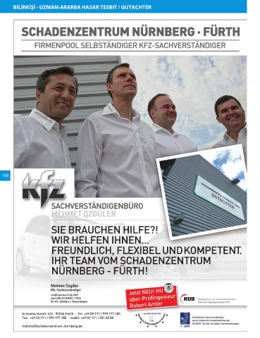 BİLİRKİŞİ - UZMAN-ARARBA HASAR TESBIT / GUTACHTER 108 Anz_Kfz_Schadenzetrum_zw.indd 1 27.06.12 17:46 Post Bizim Rehber Bayern Seite 108 10.07.2012 02:12:26