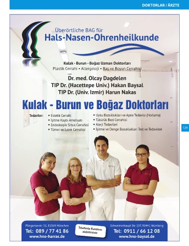 • Tümor ve Lazer Cerrahisi • İşitme ve Denge Bozuklukları Test ve Tedavileri 129