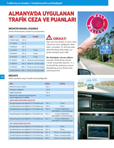 Hız göstergesinin yarı değerinin 3/10’nundan azsa 240,- � 4 Puan, 1 ay sürüş yasağı