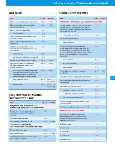 Sollama yasağı trafik işaretini ihlal etmek 70,- � 1 Puan Park eTMek: 3 dakikadan fazla durMak Ve Park eTMek