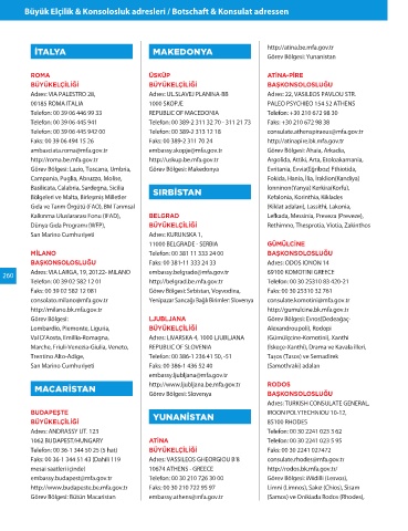 Telefon: 00 39 02 582 12 01 http://belgrad.be.mfa.gov.tr Telefon: 00 30 25310 83 420-21