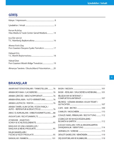 İçindekiler / Inhalt ��������������������������������������������������������������� 9