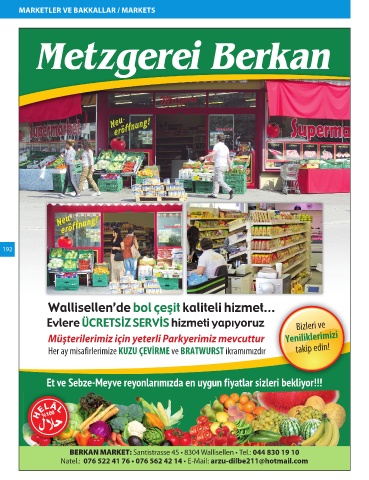 BERKAN MARKET: Santistrasse 45 • 8304 Wallisellen • Tel.: 044 830 19 10