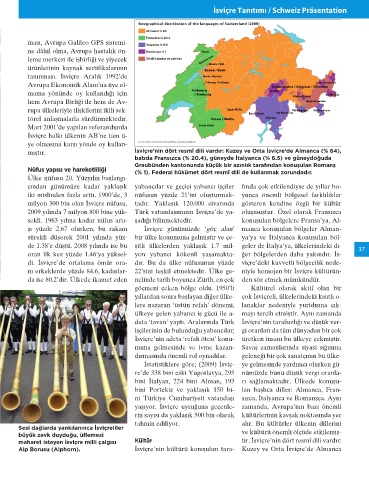 mıştır. İsviçre’nin dört resmî dili vardır: Kuzey ve Orta İsviçre’de Almanca (% 64),