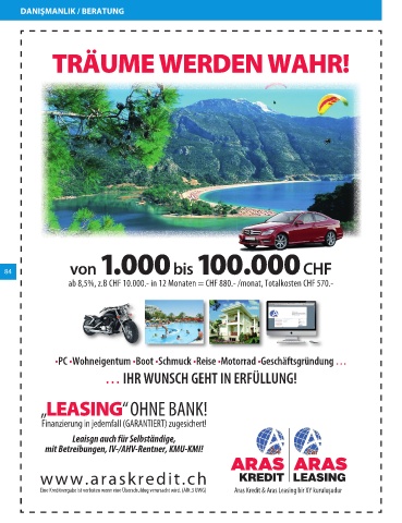 Eine Kreditvergabe ist verboten wenn eine Überschuldug verursacht wird. (ARt.3 UWG) Aras Kredit & Aras Leasing bir XY kuruluşudur