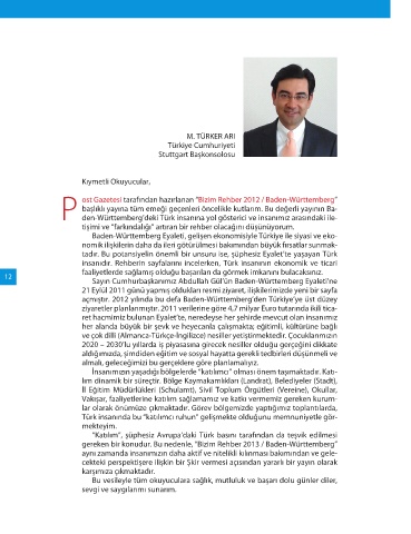 Sayın Cumhurbaşkanımız Abdullah Gül’ün Baden-Württemberg Eya le ti’ ne