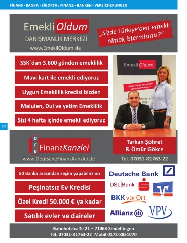FİNANS - BANKA - SİGORTA / FINANZ - BANKEN - VERSICHERUNGEN 132 Post Bizim Rehber Baden-Württemberg Seite 132 15.11.2012 10:55:09