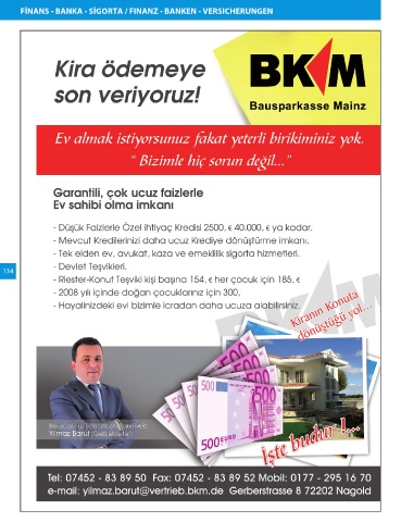 FİNANS - BANKA - SİGORTA / FINANZ - BANKEN - VERSICHERUNGEN 134 Post Bizim Rehber Baden-Württemberg Seite 134 15.11.2012 10:55:46