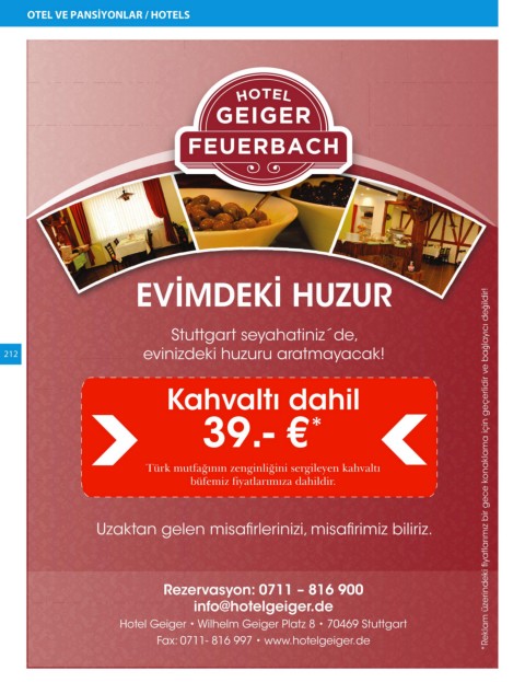 OTEL VE PANSİYONLAR / HOTELS 212 Post Bizim Rehber Baden-Württemberg Seite 212 15.11.2012 11:19:47