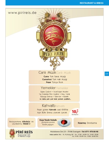 PİRİ REİS Waldebene Ost 231 • 70186 Stuttgart • Tel: 0711 470 80 48
