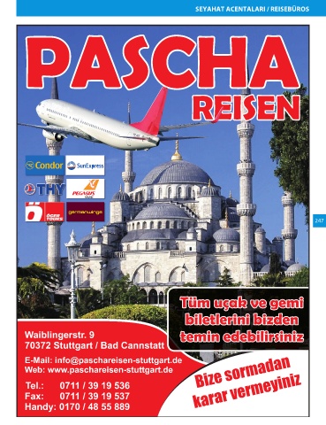SEYAHAT ACENTALARI / REISEBÜROS 247 Bize sormadan karar vermeyiniz Post Bizim Rehber Baden-Württemberg Seite 247 15.11.2012 11:35:53