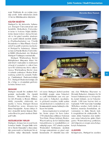 ce des - Benz’ in genel mer ke zi Stutt- ler, kente apayrı bir hava katar. lı zenginlikleri ile etkileyicidir. İn-