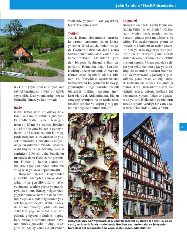 ken, birkaç kilometre ötede hava- Dünyaca ünlü Schwarzwald’ın Guguk’lu saatleri bu bölge de üretilir. çeşit