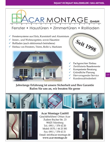 İNŞAAT VE İNŞAAT MALZEMELERİ / BAU-ARTIKEL 137 Post Bizim Rehber Bayern Seite 137 27.06.2013 18:57:29
