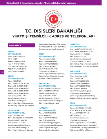 Telefon: (00 49 30) 896 80 211 BAŞKONSOLOSLUĞU Telefon: 00 49-721 98 44 050