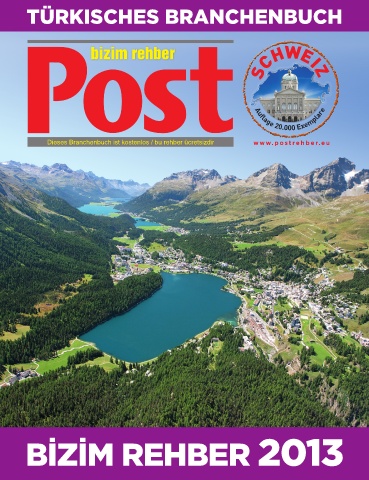TÜRKISCHES BRANCHENBUCH bizim rehber SCHWEIZ Auflage 20.000 Exemplare Dieses Branchenbuch ist kostenlos / bu rehber ücretsizdir w w w.pos tr ehber. eu BİZİM REHBER 2013 Branchenbuch_Umschlag_aussen_vorne.indd 1 24.04.13 14:19