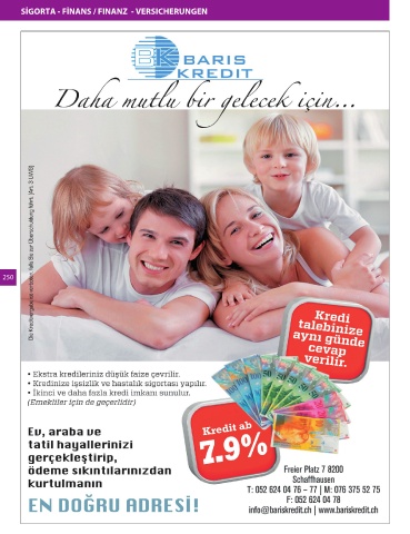 SİGORTA - FİNANS / FINANZ - VERSICHERUNGEN 250 Post Bizim Rehber Isvicre Seite 250 29.04.2013 14:42:24