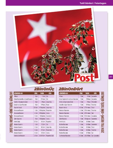 2013 Yılı Resmî–Dini TaTil GünleRi