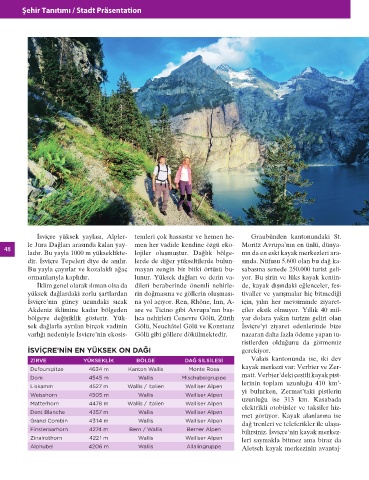 İSVİÇRE’NİN EN YÜKSEK ON DAĞI gerekiyor.