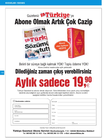 Türkiye Gazetesi Abone Servisi: Starkenburgstr. 7-9 • 64546 Mörfelden/Walldorf