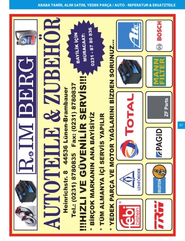 ARABA TAMİR, ALIM SATIM, YEDEK PARÇA / AUTO - REPERATUR & ERSATZTEILE 67 Post Bizim Rehber Köln Seite 67 21.01.2013 13:22:53