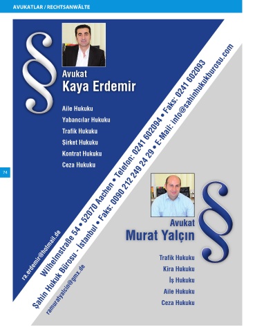 AVUKATLAR / RECHTSANWÄLTE 74 Post Bizim Rehber Köln Seite 74 21.01.2013 13:25:41