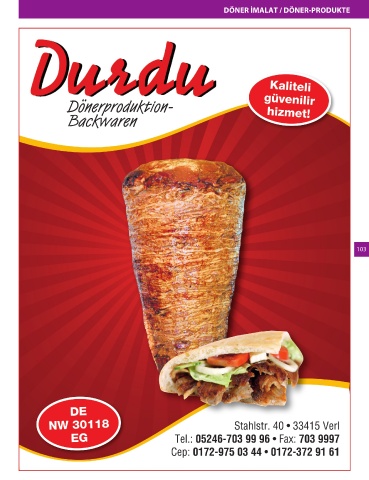 DÖNER İMALAT / DÖNER-PRODUKTE 103 Post Bizim Rehber NRW-Ruhr Seite 103 07.04.2013 14:52:38