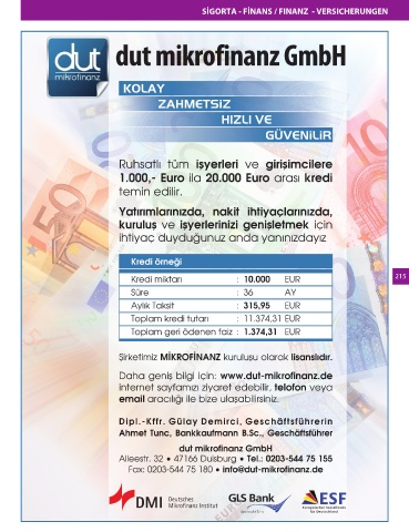 SİGORTA - FİNANS / FINANZ - VERSICHERUNGEN 215 Post Bizim Rehber NRW-Ruhr Seite 215 07.04.2013 15:08:01