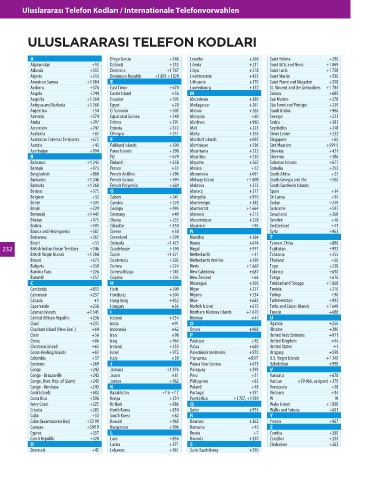 ULUSLARARASI TELEFON KODLARI
