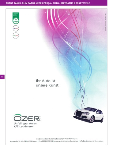 ARABA TAMİR, ALIM SATIM, YEDEK PARÇA / AUTO - REPERATUR & ERSATZTEILE 60 Post Bizim Rehber NRW-Ruhr Seite 60 07.04.2013 14:41:32