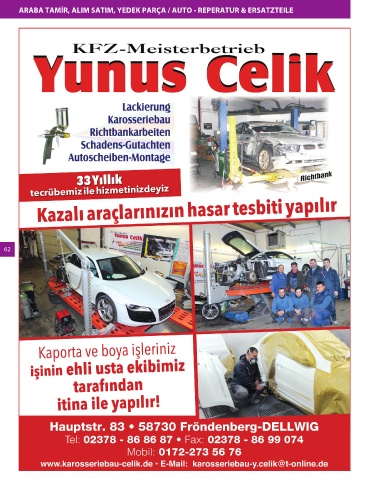 ARABA TAMİR, ALIM SATIM, YEDEK PARÇA / AUTO - REPERATUR & ERSATZTEILE 62 Post Bizim Rehber NRW-Ruhr Seite 62 07.04.2013 14:41:48